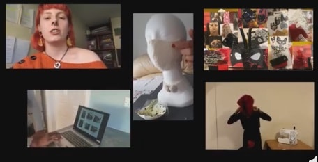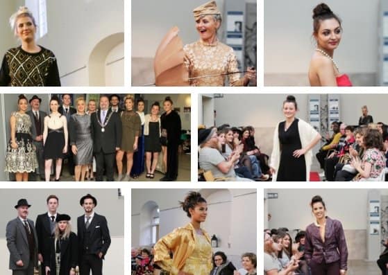 Fashion Students who have upcycled 2 piece outfits and creative masks with the support from their tutors including the ever enthusiastic Theresa Neville.